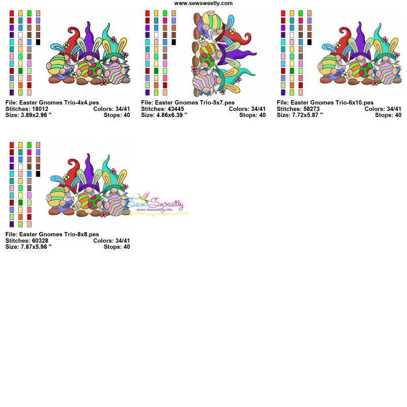 Easter Gnomes Trio Exclusive Machine Embroidery Design Pattern For Easter.