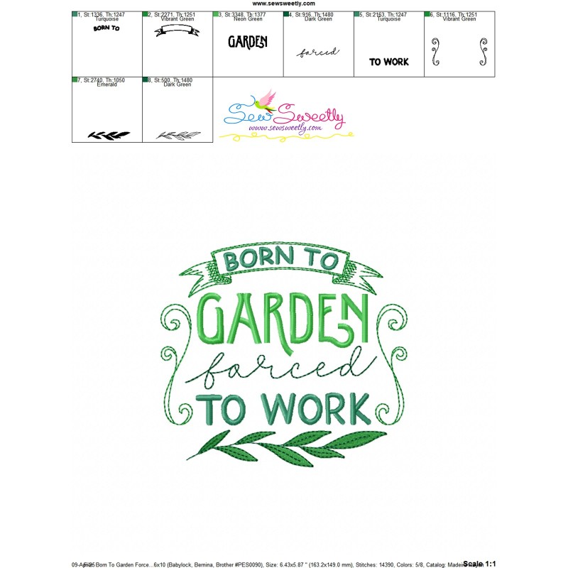 Born To Garden Forced To Work Exclusive Machine Embroidery Design Pattern.