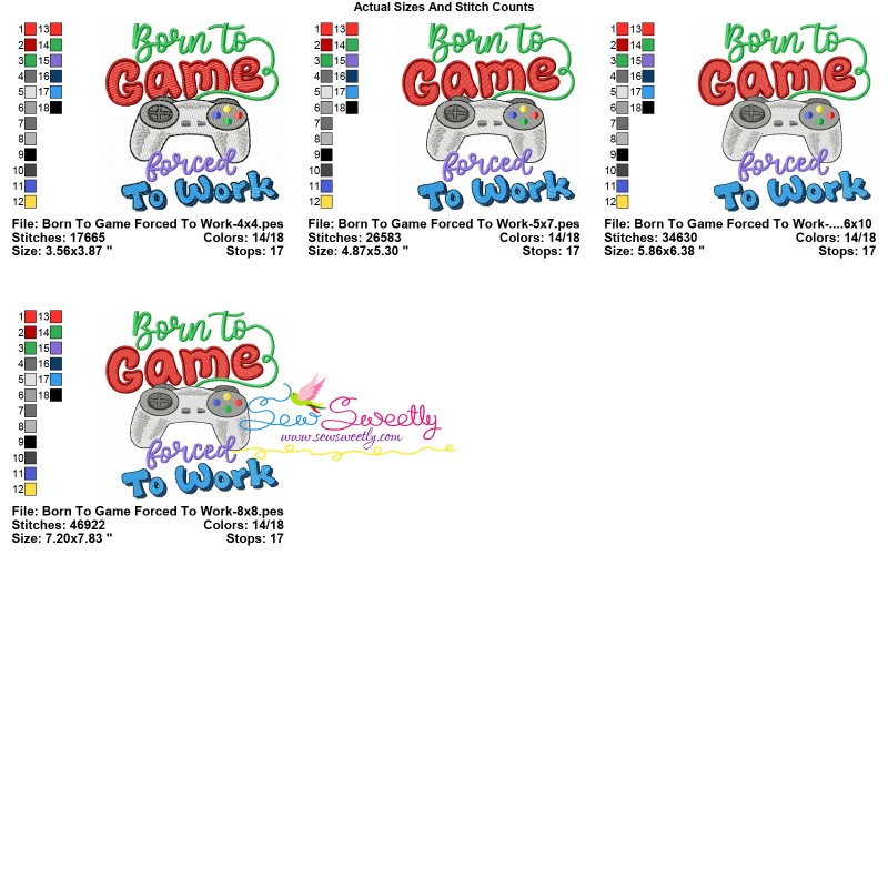 Born To Game Forced To Work Exclusive Machine Embroidery Design Pattern.