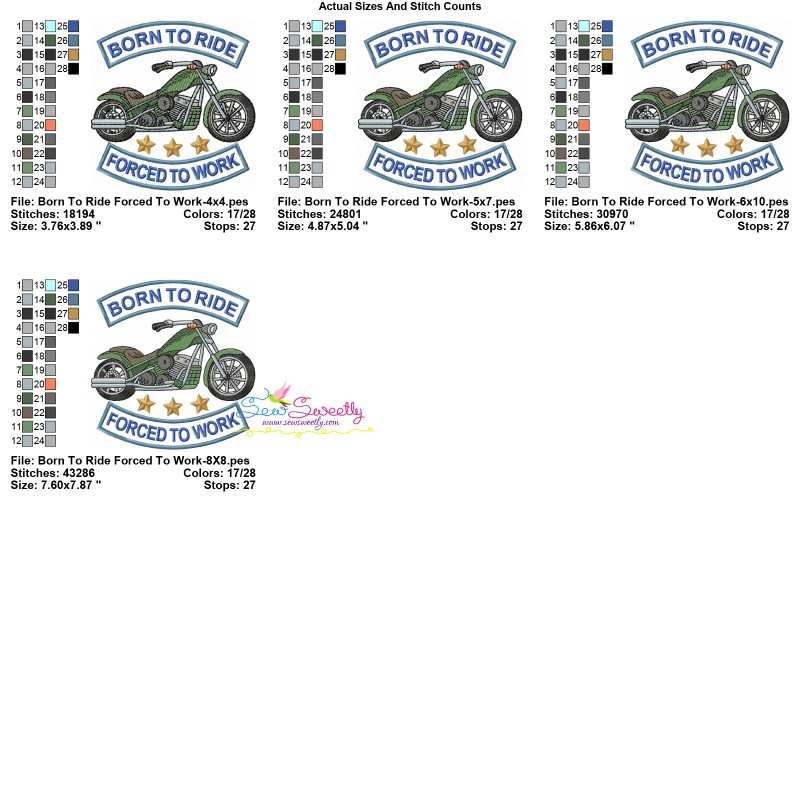 Born To Ride Forced To Work Exclusive Machine Embroidery Design Pattern.