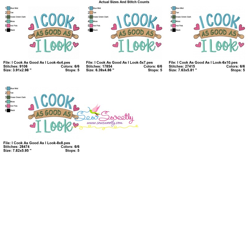 I Cook As Good As I Look Exclusive Machine Embroidery Design Pattern For Kitchen Embroidery Projects.