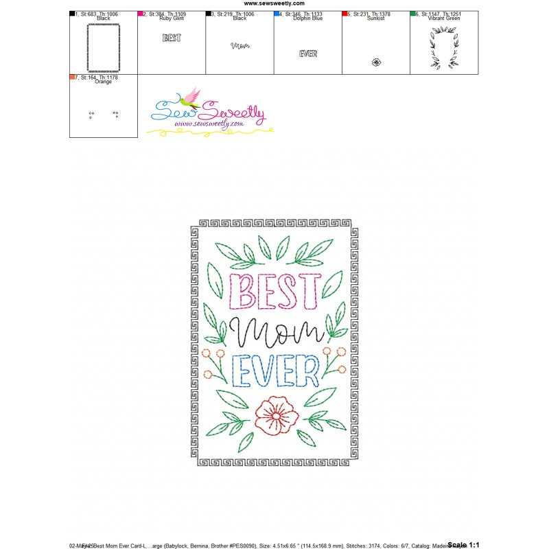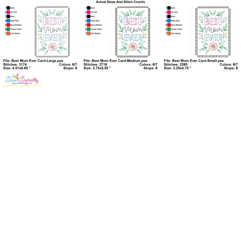 PDF color Chart and cardstock embroidery instructions PDF file included.