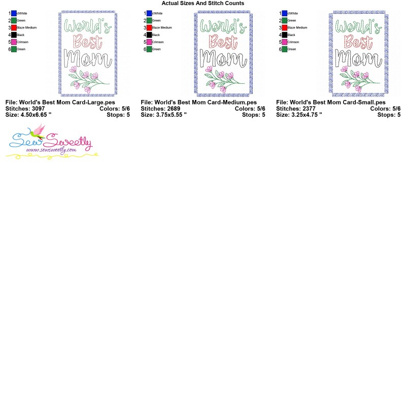 PDF color Chart and cardstock embroidery instructions PDF file included.