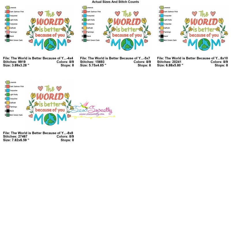 The World is Better Because of You Mom Exclusive Machine Embroidery Design Pattern For Mother's Day.
