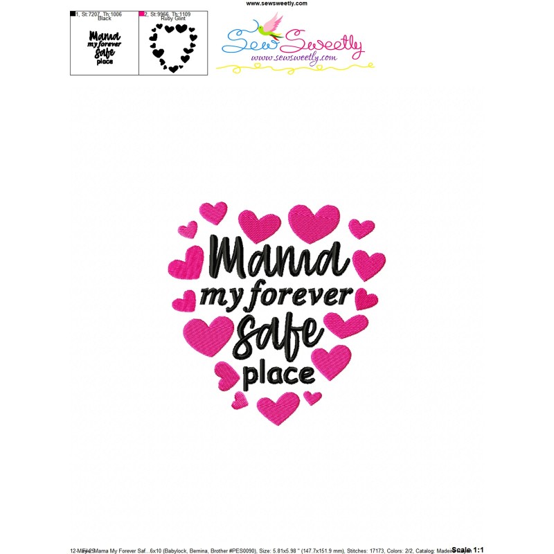 Mama My Forever Safe Place Exclusive Machine Embroidery Design Pattern For Mother's Day.
