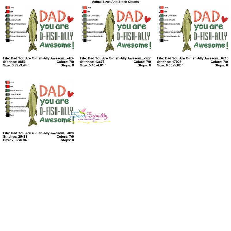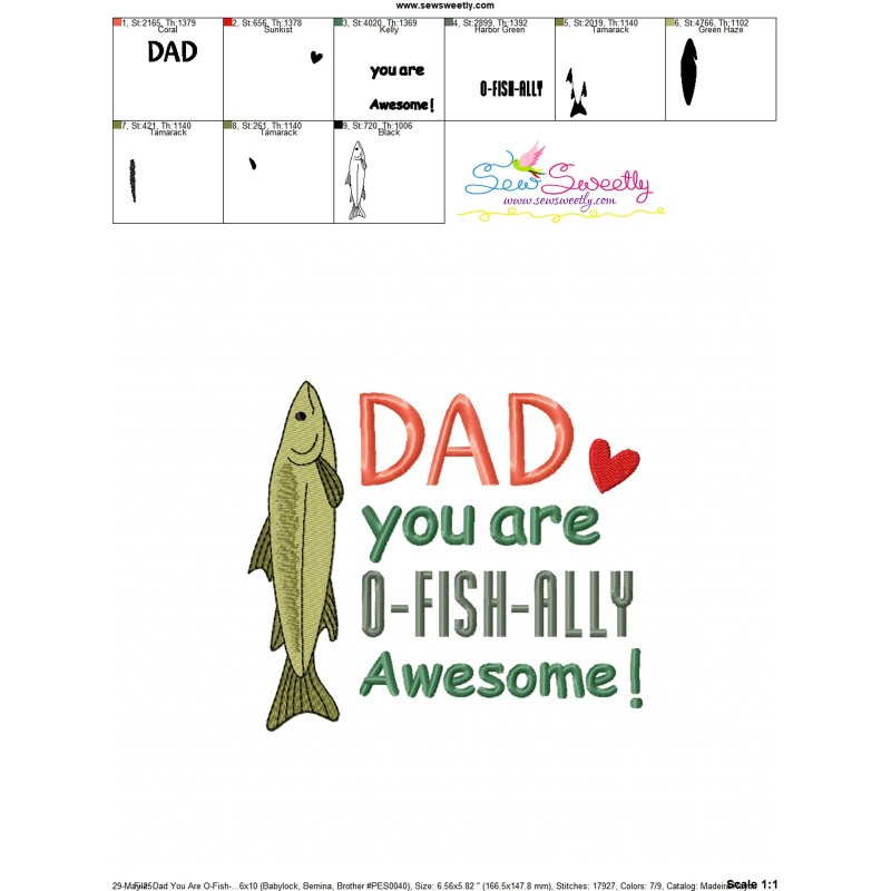 Dad You Are O-Fish-Ally Awesome Exclusive Machine Embroidery Design Pattern For Father's Day.