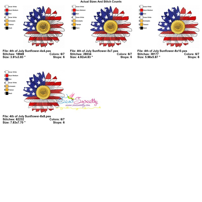 4th of July Sunflower Exclusive Machine Embroidery Design Pattern.