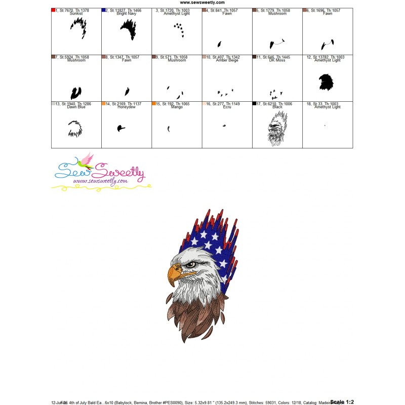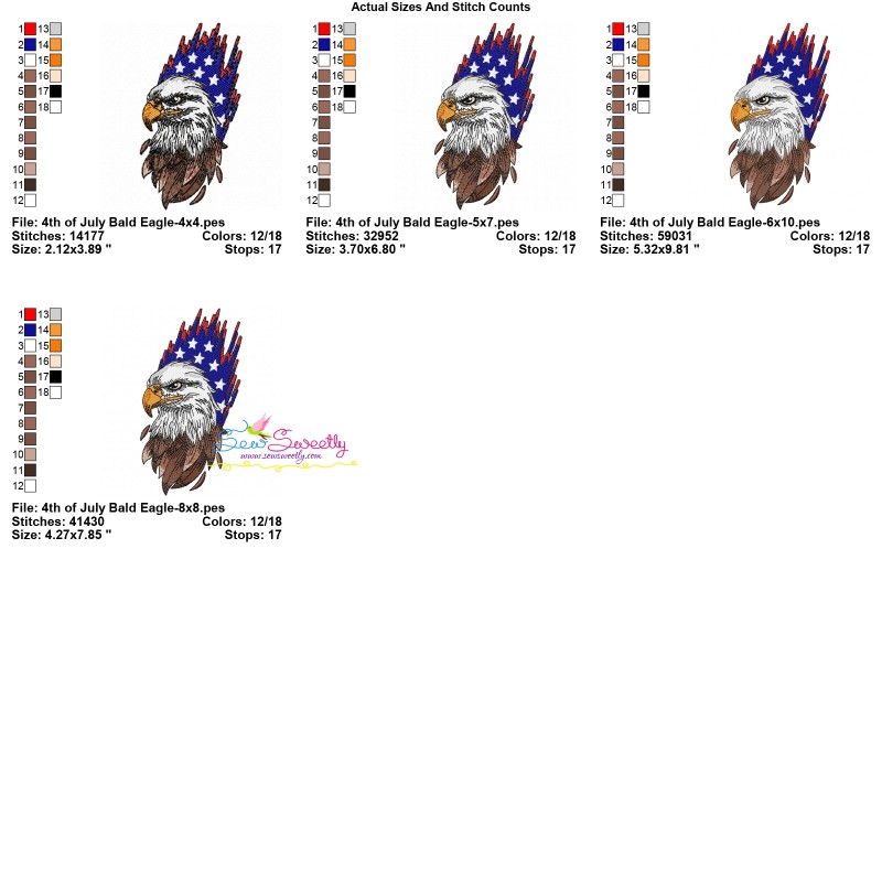 4th of July Bald Eagle Exclusive Machine Embroidery Design Pattern.