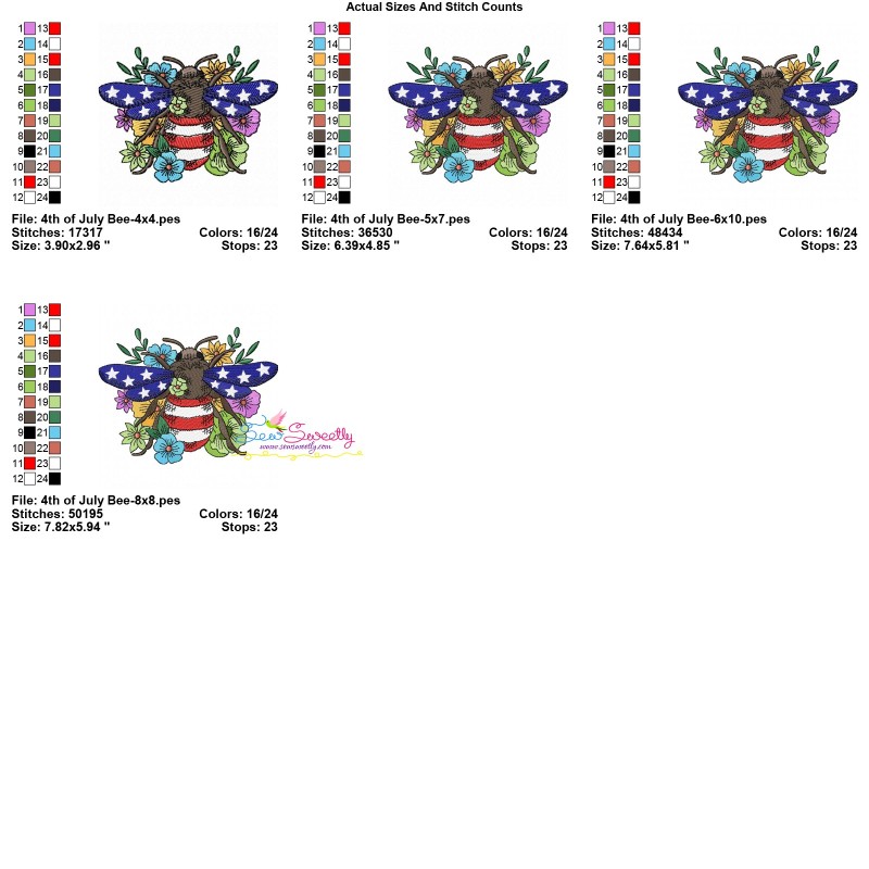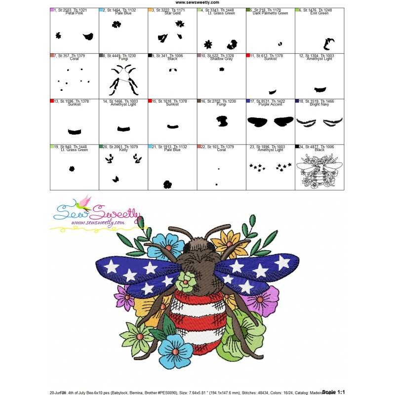 4th of July Bee Exclusive Machine Embroidery Design Pattern.