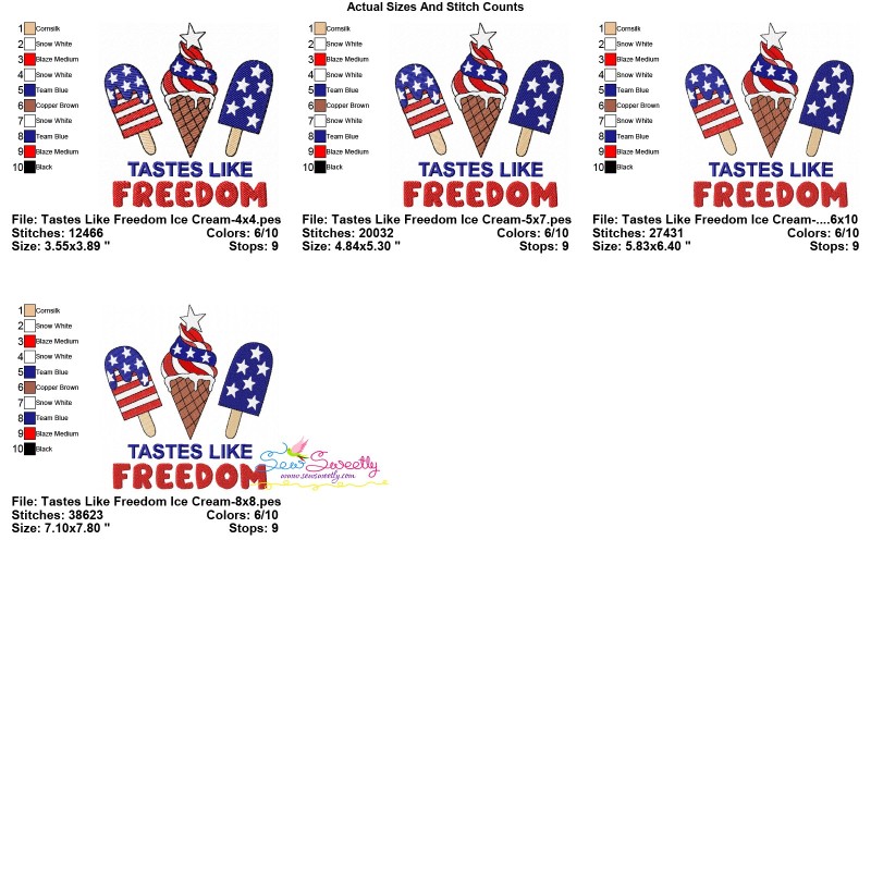 Tastes Like Freedom Ice Cream 4th of July Exclusive Machine Embroidery Design Pattern.