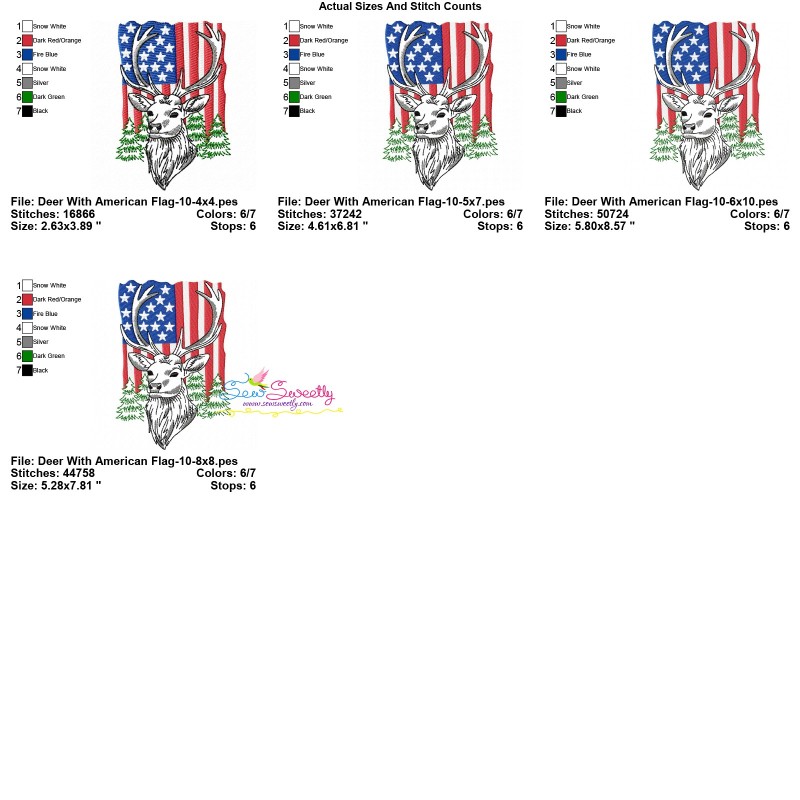 Deer With American Flag-10 4th of July Exclusive Machine Embroidery Design Pattern.